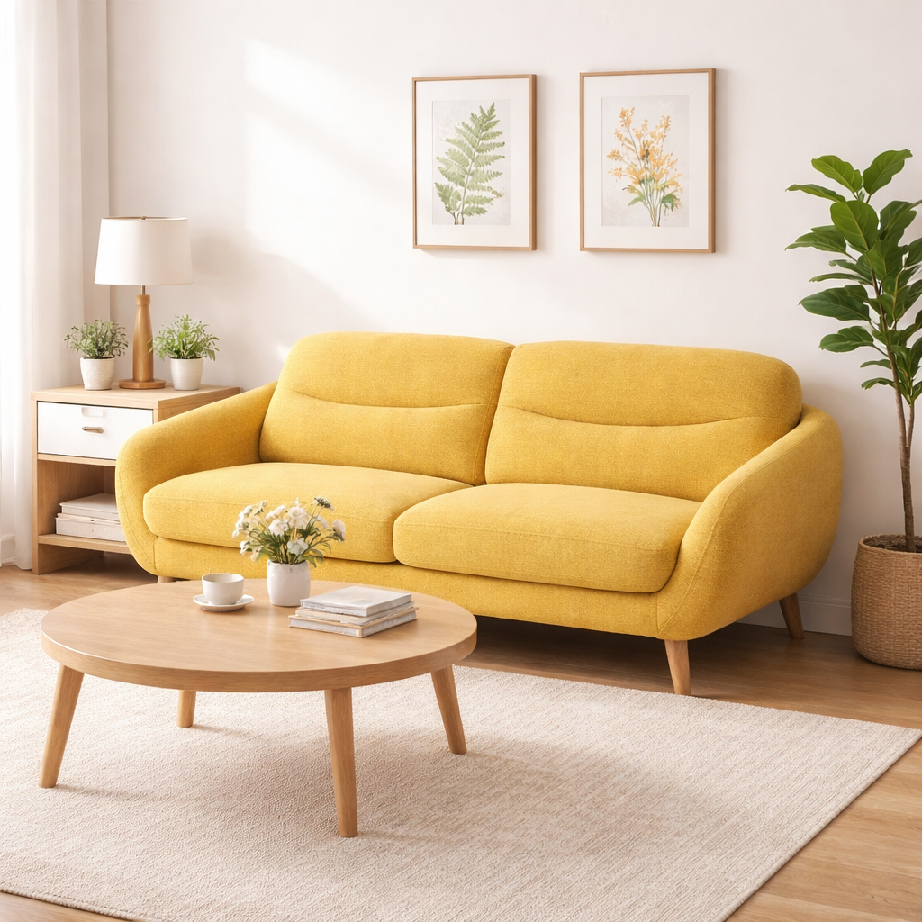 Canape 2 Places Design Moderne Tissu Jaune Moutarde